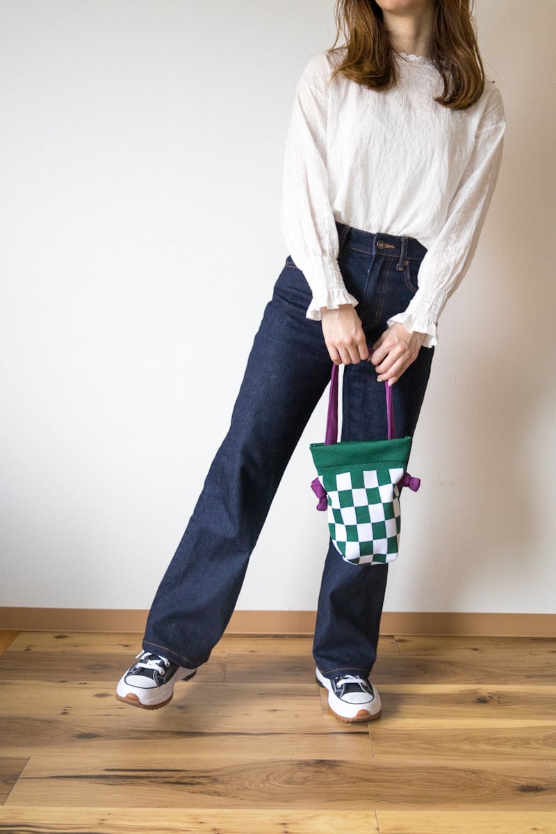 持ち手(obi)の部分は取り外し可能で、結び目の位置を変えることで外側と内側でのアレンジを楽しめます。長さの調節も可能です。
