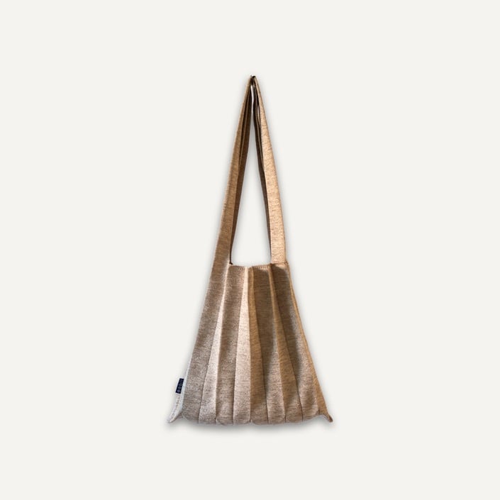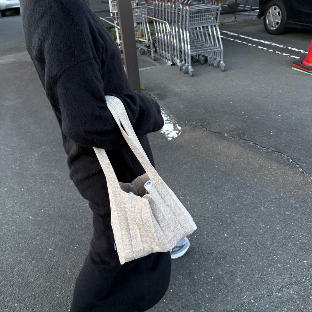 普段持ち歩く最小限の荷物を入れられるサイズ。プリーツのラインで折りたためるので、サブバッグとしても活躍します。